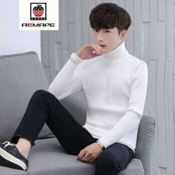 遥渠高领毛衣男秋冬季加厚韩版修身新品学生圆领针织衫外套男装 黑色 L |
