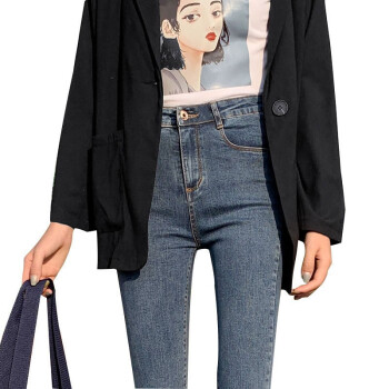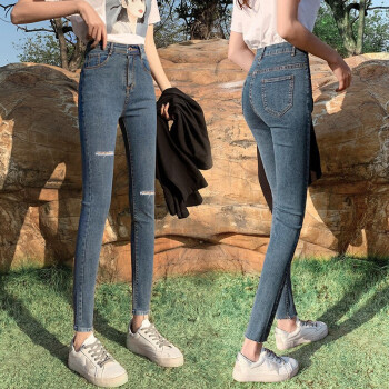 得听牛仔裤女秋季新款韩版修身弹力显瘦显高春秋季黑色紧身九分小脚破洞高腰牛仔裤 (常规款)复古蓝 27(86-95斤) |