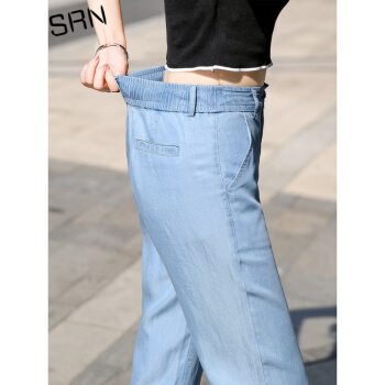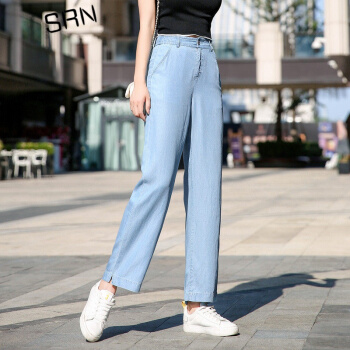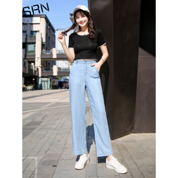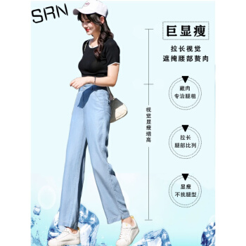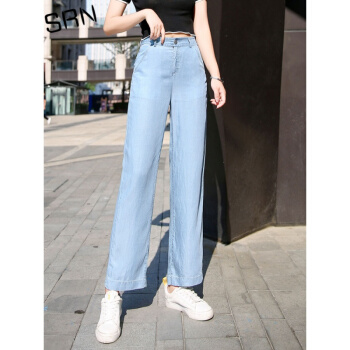 SRN轻奢女装 冰丝阔腿裤女新款高腰直筒宽松夏季冰氧吧显瘦显高薄款天丝牛仔裤 浅蓝色 26 |