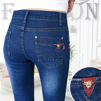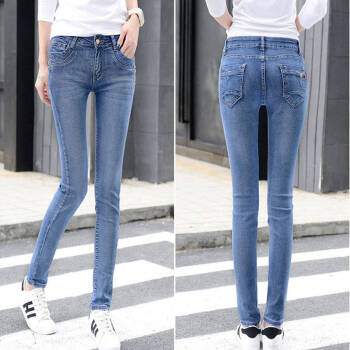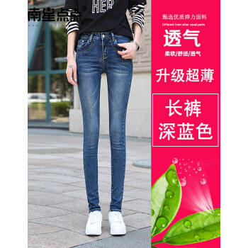 南星点点高腰牛仔裤女裤秋季新款韩版显瘦小脚长裤裤子 深蓝 27 |