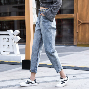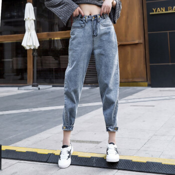 【2件特价】右昀 牛仔裤女夏季薄款九分老爹裤子新高腰网红泫雅宽松哈伦春秋萝卜潮 7768浅蓝色 L【适合110-120斤】 |