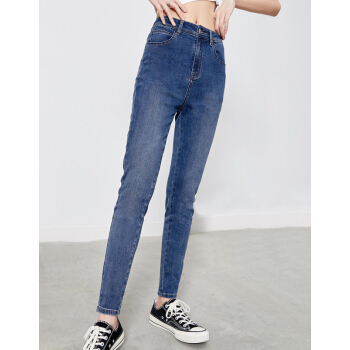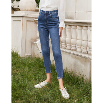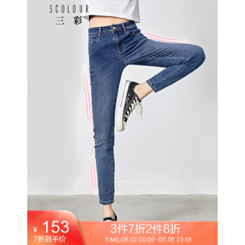 三彩秋季新款高腰弹力3D瘦身显瘦修身小脚裤水洗牛仔长裤女 蓝色 155/64A/S |