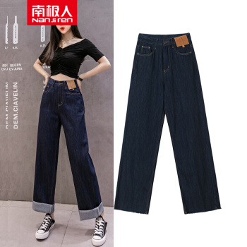 南极人 牛仔裤女夏季新款阔腿裤韩版时尚百搭宽松显瘦高腰垂感拖地裤子 N7-FF2D11-525-蓝色 请拍正确尺码 |