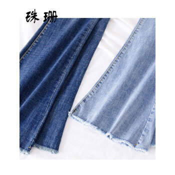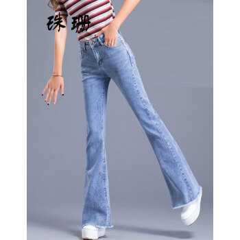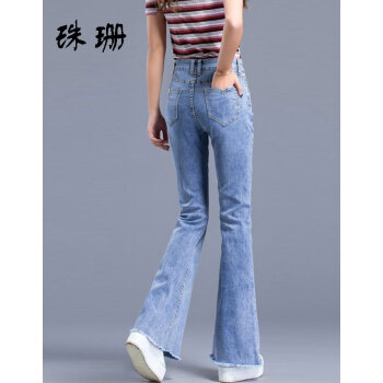 珠珊中高腰牛仔裤女春秋新款裤子女装微喇裤拖地裤女长裤大码女装垂感休闲裤女 3799-浅蓝色 29码【110-120斤左右】 |