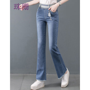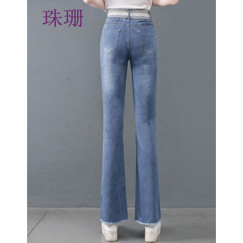 珠珊高腰牛仔裤女春秋新款裤子女装阔腿裤拖地裤女长裤直筒裤大码女装垂感休闲裤女 109-蓝色 29码(建议110-120斤左右) |