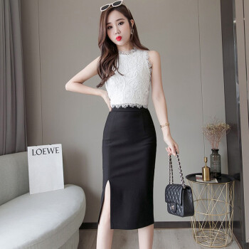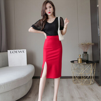 五个橘子半身裙女夏 新款女装弹力A字中长款包臀裙开叉黑色紧身显高瘦职业通勤OL上班大码裙子夏 黑色 L |