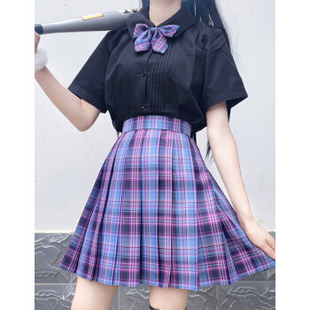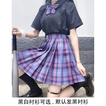 夏季新款电竞少女jk制服裙套装温柔一刀格子裙日系学生百褶裙半身裙短裙子春夏正版 电竞少女+(黑/白衬衫可选)+领结 M |