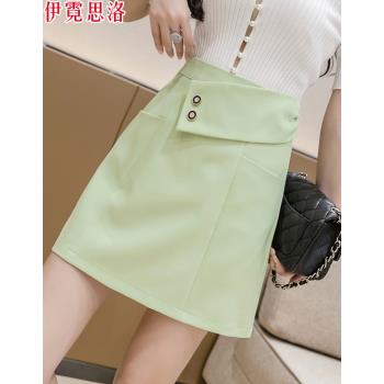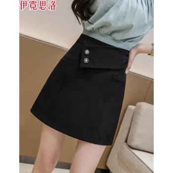 伊霓思洛半身裙女夏季高腰新款短裙子韩版A字裙时尚女装显瘦职业裤裙 黑色 M |