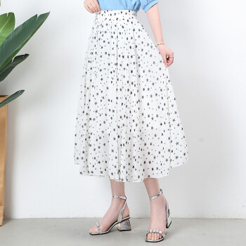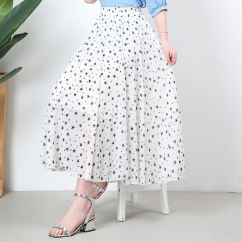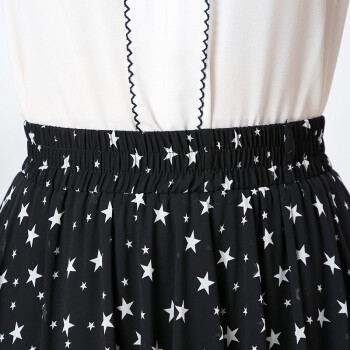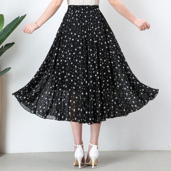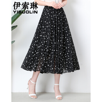 伊索琳星星碎花雪纺夏半身裙女中长款夏季高腰不规则荷叶边蛋糕裙中长裙 黑色 均码 80-140斤 |