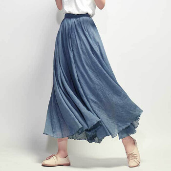 黛曦森女复古纯色大摆亚麻半身长裙夏中长款高腰文艺棉麻半身裙女裙子 珊珊色 M码裙长85cm |