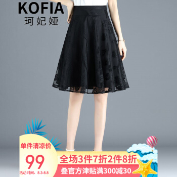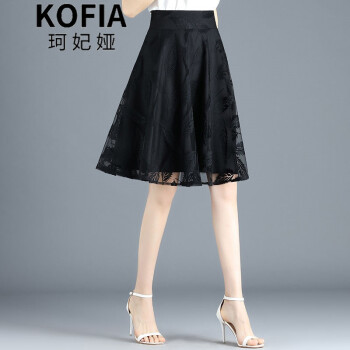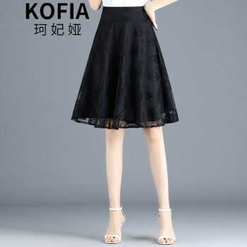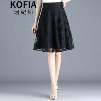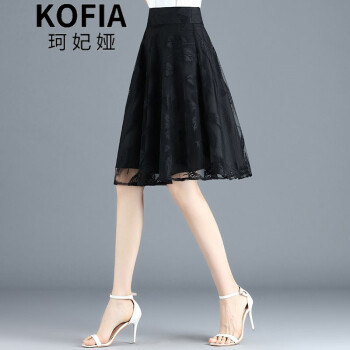 珂妃娅 半身短裙女a字裙夏薄款裙子黑色欧根纱中长百褶蓬蓬网纱裙 9936 黑色 L/28码-2尺1 |