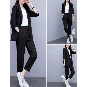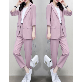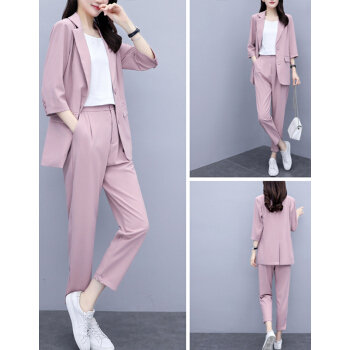 婪澈休闲裤女女装夏新款西装套装女韩版显瘦职业西服女时尚气质洋气职业两件套套装女 粉色 请拍正确尺码 |