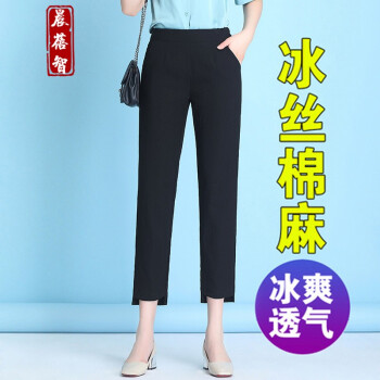 晨蓓智cbz休闲裤女新款冰丝棉麻哈伦裤女春夏季薄款九分裤直筒高腰宽松显瘦大码胖MM萝卜裤 黑色九分裤 M【建议90-105斤】 |