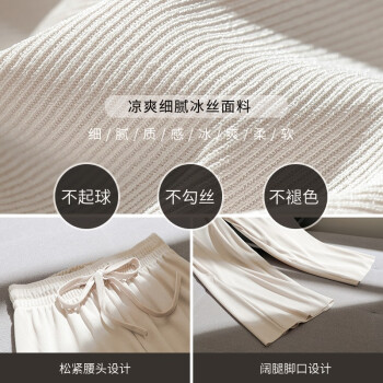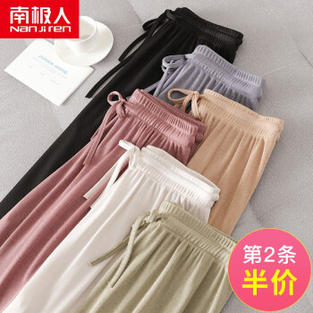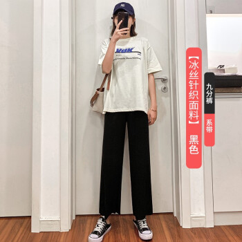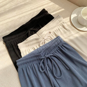 南极人冰丝阔腿裤女春秋九分休闲裤夏高腰垂感打底裤安全裤显瘦宽松百搭直筒西装运动哈伦 黑色-系带九分裤 |