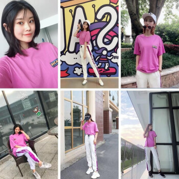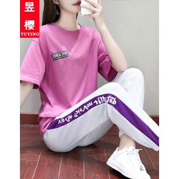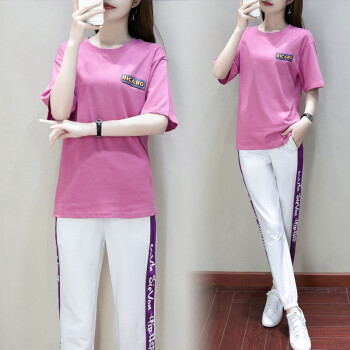 昱樱休闲裤女运动套装女春夏季新款时尚网红韩版宽松短袖t恤长裤子学生休闲两件套大码女装卫衣女潮 紫色+白裤 此码勿拍.请拍自身对应码数 |