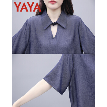 鸭鸭服饰yaya休闲裤女时尚妈妈装两件套女装夏季新款洋气大码宽松中年人成熟套装女 牛仔蓝 请选择正确尺码 |