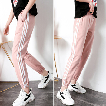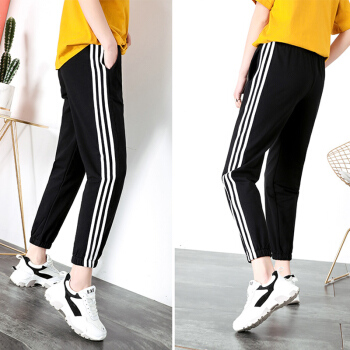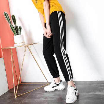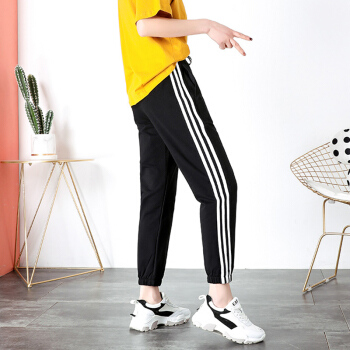 休闲裤女春秋新款宽松运动裤女百搭哈伦裤显瘦束脚卫裤 黑色 XS |