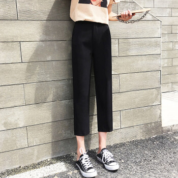 阔腿裤女九分裤夏新款休闲高腰垂感西装裤薄款宽松七分直筒裤秋天 黑色9分 M |