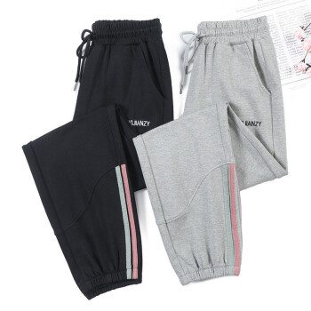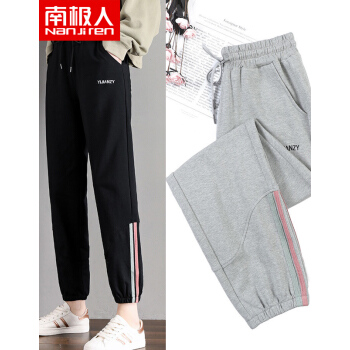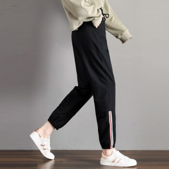 南极人 休闲裤女春夏新款时尚大码运动裤女学生宽松韩版显瘦哈伦裤春季束脚百搭裤子 黑色-长裤 请拍正确尺码 |