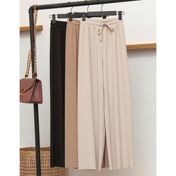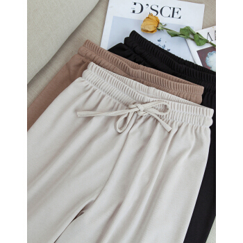 莫代尔冰丝阔腿裤女春秋九分休闲裤夏高腰垂感小个子显瘦宽松百搭直筒西装运动哈伦 黑色九分(建议85-135斤) |
