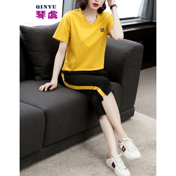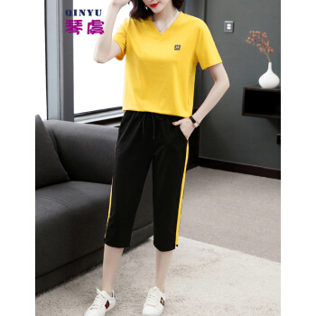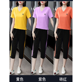 琴虞QY休闲运动套装七分休闲裤套装女夏新款大码胖妹妹显瘦套装梨形身材穿搭显瘦遮肉时尚两件套 桔色套装 M【建议85至100斤】 |