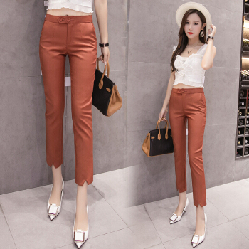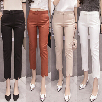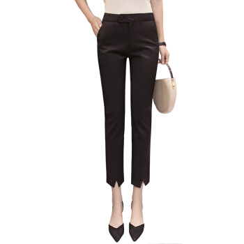 雅依芸汐 休闲裤女西裤新款夏季九分直筒铅笔职业工作小脚裤子女裤夏薄 黑色 L |