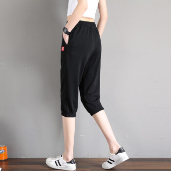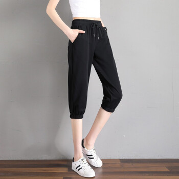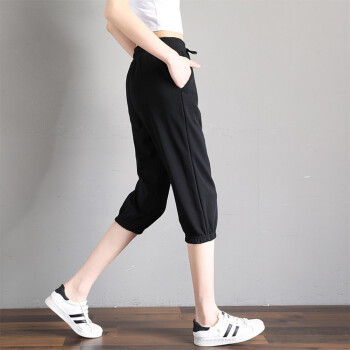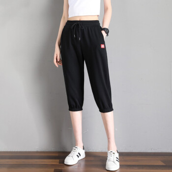南极人 七分裤子女夏季新款薄款运动短裤宽松百搭棉中裤休闲裤束脚韩版减龄女裤 JY304 黑色 请拍正确尺码 |