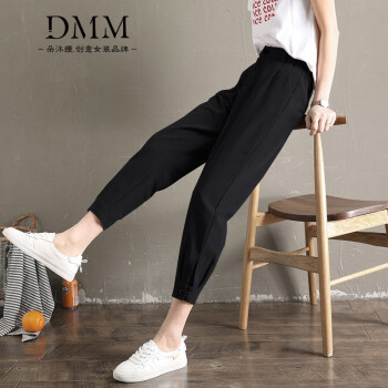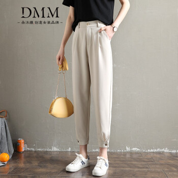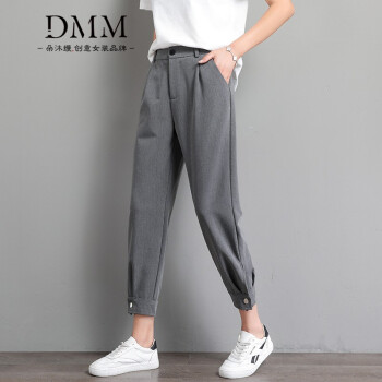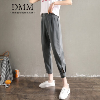 朵沐缦 束脚休闲裤女高腰显瘦夏季薄款哈伦裤时尚韩版百搭西装裤直筒宽松九分萝卜裤潮 1680-1薄款 灰色 L |