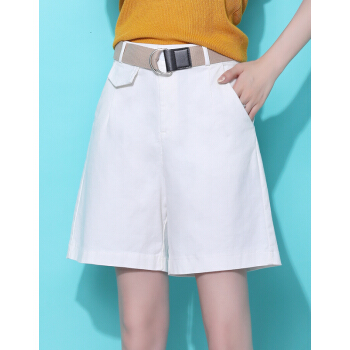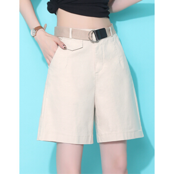 若宸短裤女夏季五分裤休闲女式外穿学生高腰阔腿热裤韩版显瘦a字大码女装 米色 L |