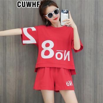 CUWHF 短裤女休闲套装女短裤运动服夏季新款时尚胖MM大码短袖T恤两件套潮 绿色 L |