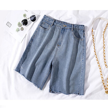 【品质好货】Hizze牛仔短裤女新款高腰显瘦休闲直筒裤夏季薄款紧身外穿五分骑行中裤 黑色 M |