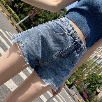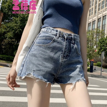 孟蓓庄休闲牛仔短裤女夏季新款潮ins高腰显瘦宽松阔腿网红a字泫雅热裤宽松a字百搭阔腿热裤 复古蓝 M(90-105斤) |