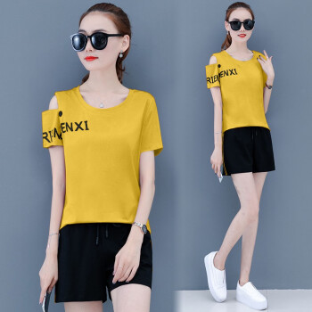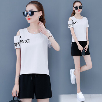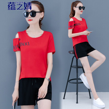 蕴之婧 新款运动休闲套装女大码女装夏韩版宽松ins潮显瘦小个子棉两件套短袖T恤短裤女 宝蓝 L(建议90-105斤左右) |