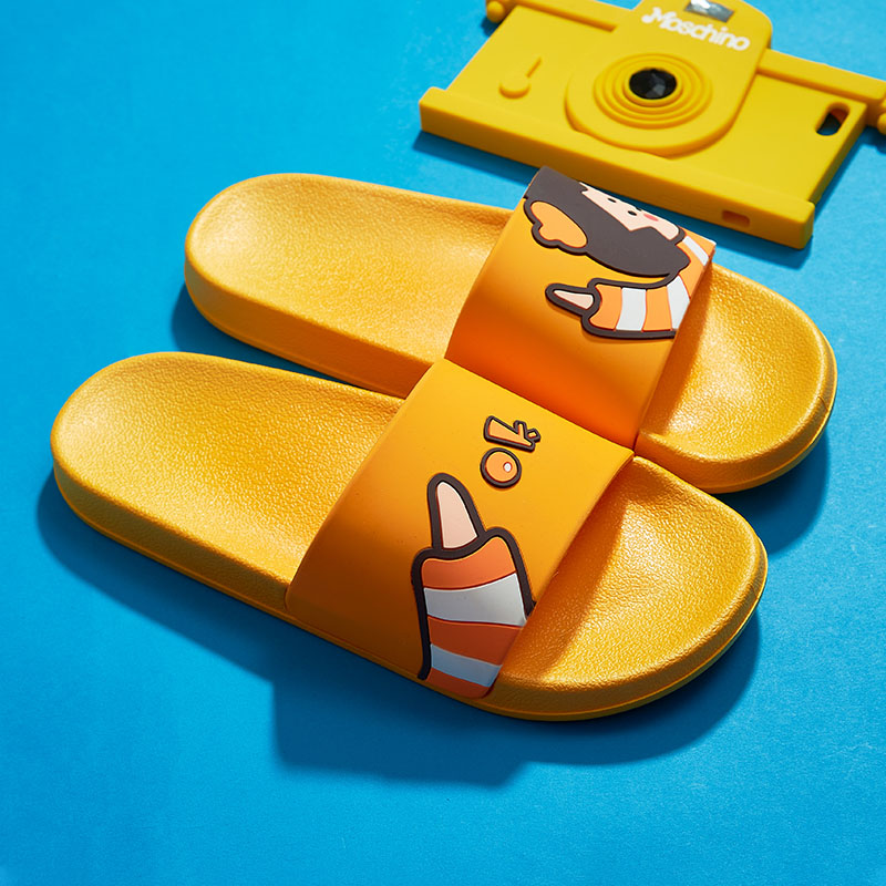 时尚卡通可爱趣味招手蘑菇头厚底舒适情侣凉拖鞋【pvc/金黄】 |