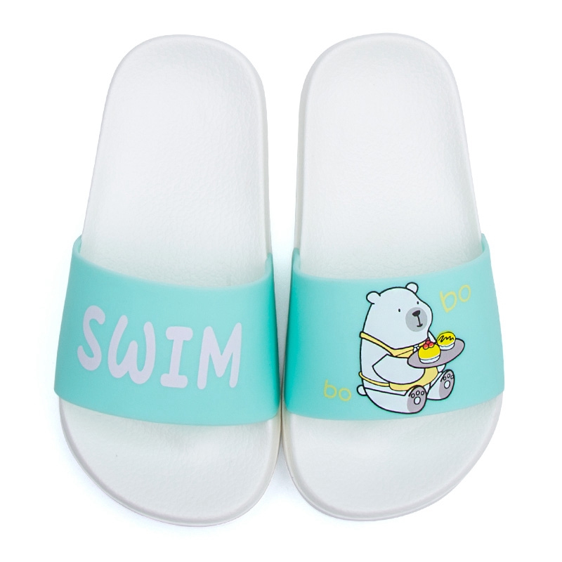 可爱卡通趣味送餐熊撞色亲子款凉拖鞋【橡塑/白色/湖蓝【童鞋】】 |