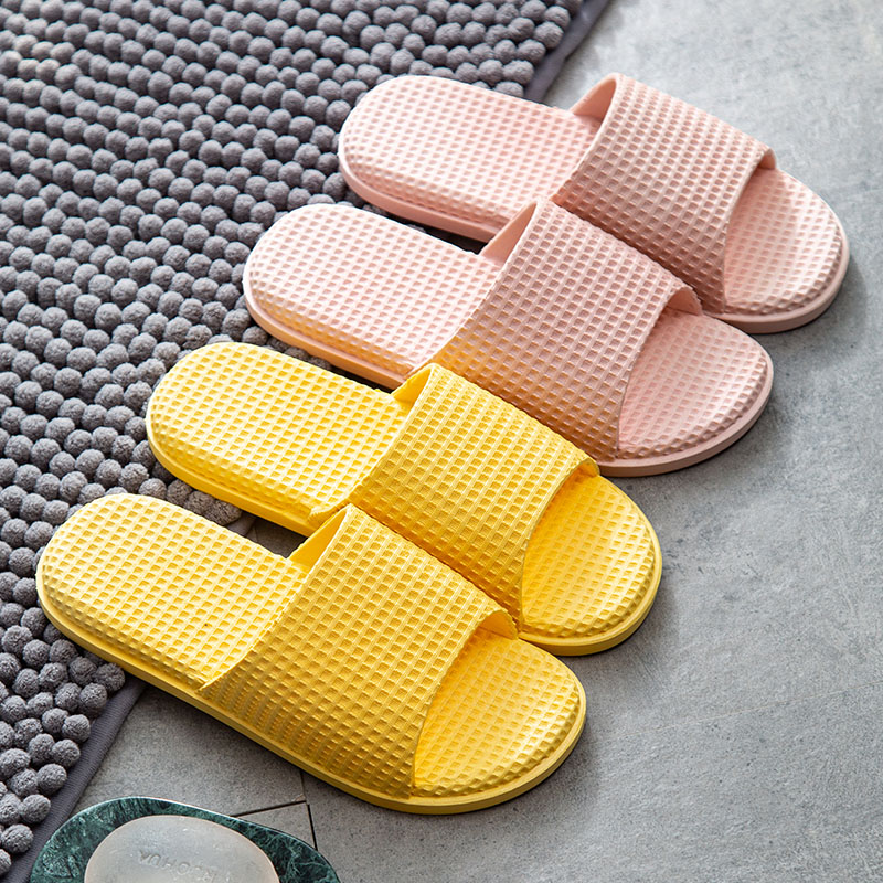纯色华夫格浴室居家PVC凉拖鞋两双装【PVC/浅粉+黄色】 |