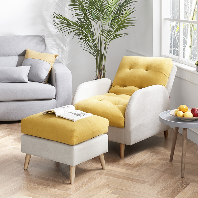 拼色懒人躺椅 含脚蹬XJ【海绵/木架/黄色】 |