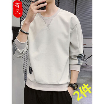 寄风 卫衣男圆领春秋季新款韩版潮流男士长袖T恤春装上衣大码外衣 2008灰色(单件) XL |