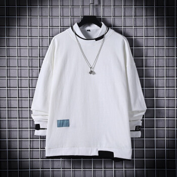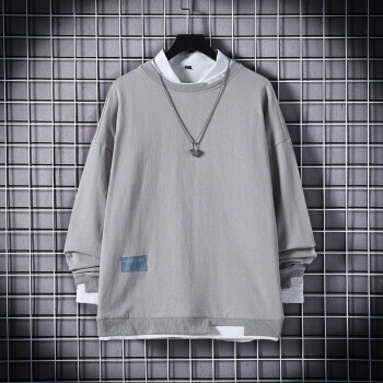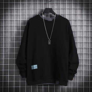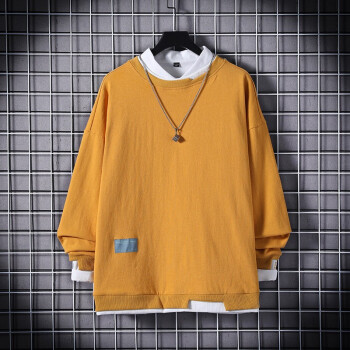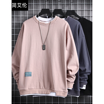 简艾伦 卫衣男T恤男士潮牌ins大码宽松圆领假两件长袖春季新款潮流上衣 TBK19209粉红色 XL |