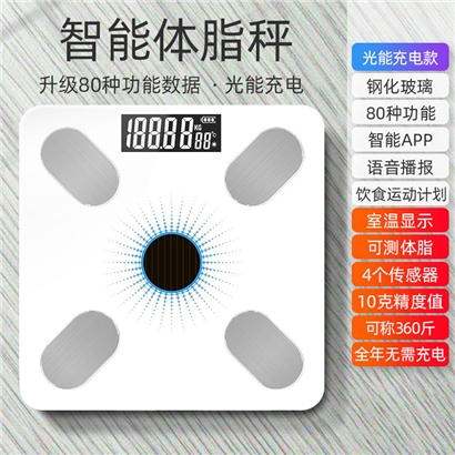 【超值单品】多功能体脂称USB充电太阳能充电两用【钢化玻璃/皓月白】 |