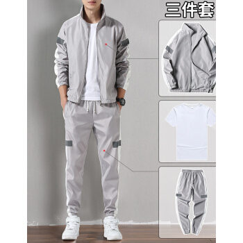 【超值 3件套】卫衣套装男春夏季运动套装新款潮休闲男装外套男服饰 801灰色(三件套) XL |