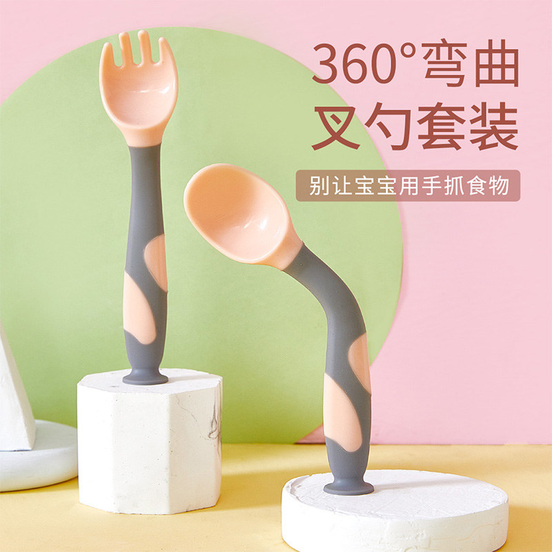 宝宝学吃饭可弯曲叉勺套装【PP+TPE/图片色】 |