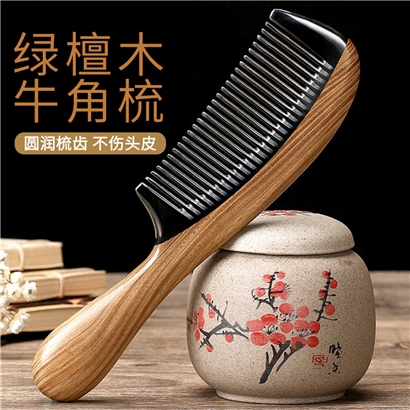 天然绿檀木拼牛角养发梳【绿檀木 水牛角/图片色】 |