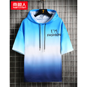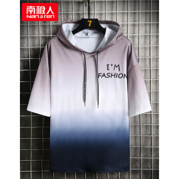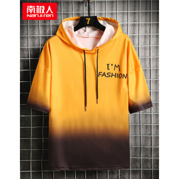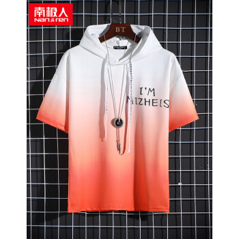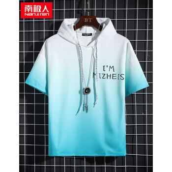 南极人短袖卫衣男薄款t恤夏装新款潮流男士连帽打底衫男女情侣套头衫渐变韩版运动上衣T恤 W804绿色短袖 XL |