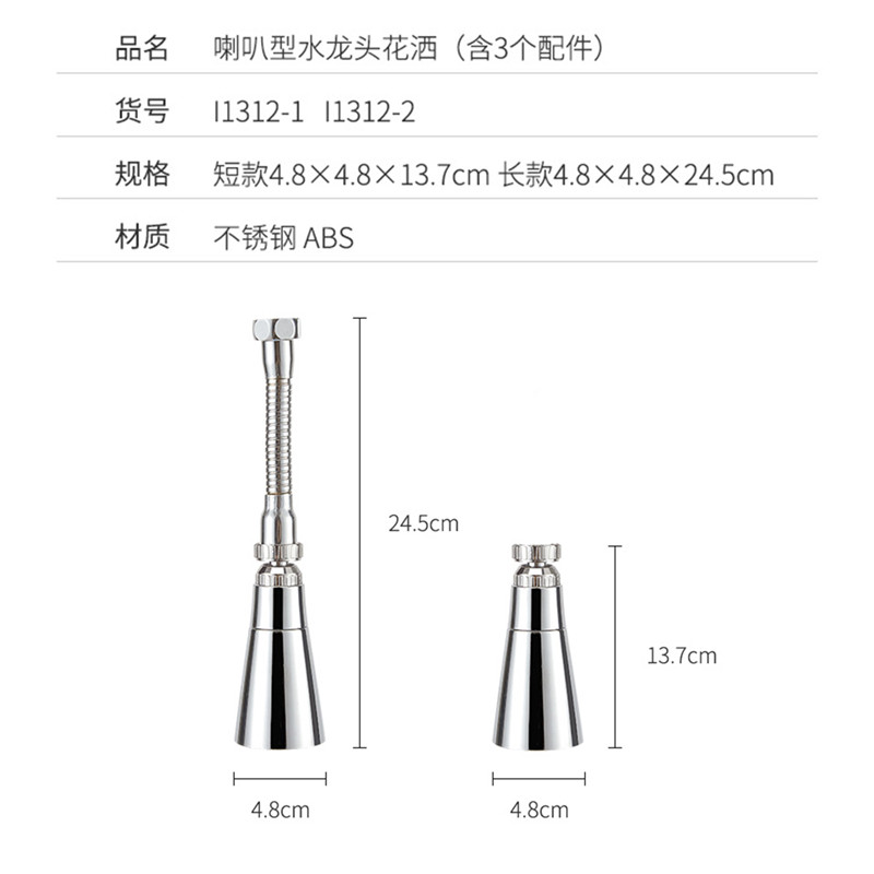 短款喇叭型水龙头花洒(含3个配件)【不锈钢/不锈钢色】 |