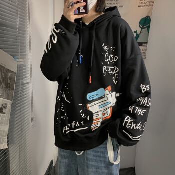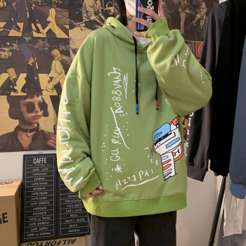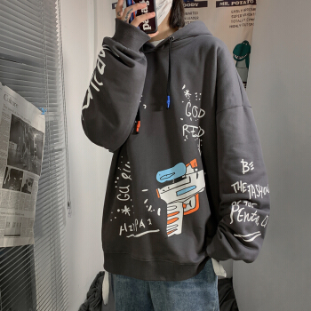 潮至 连帽卫衣男夏秋新款ins港风长袖T恤男士宽松大码休闲外套男装上衣 牛仔蓝 S |