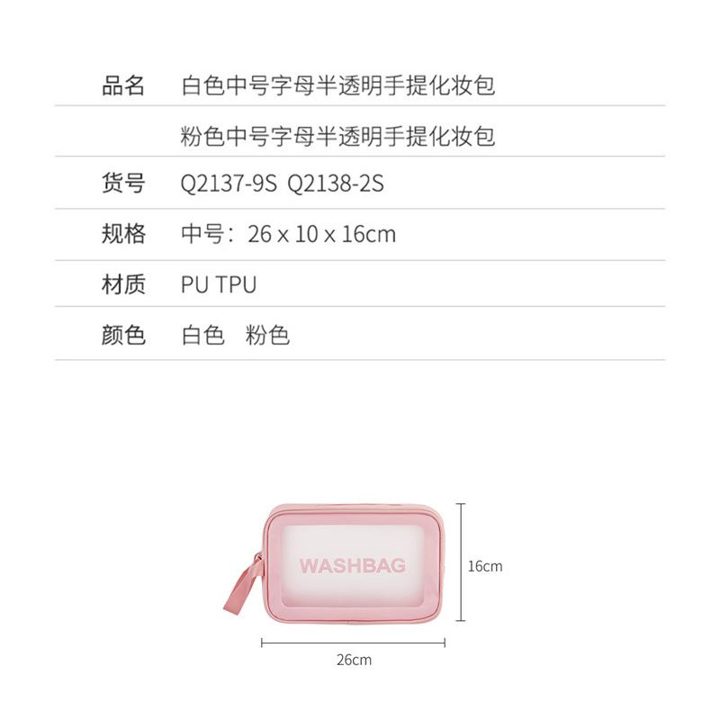中号字母半透明手提化妆包【PU TPU/图片色】 |