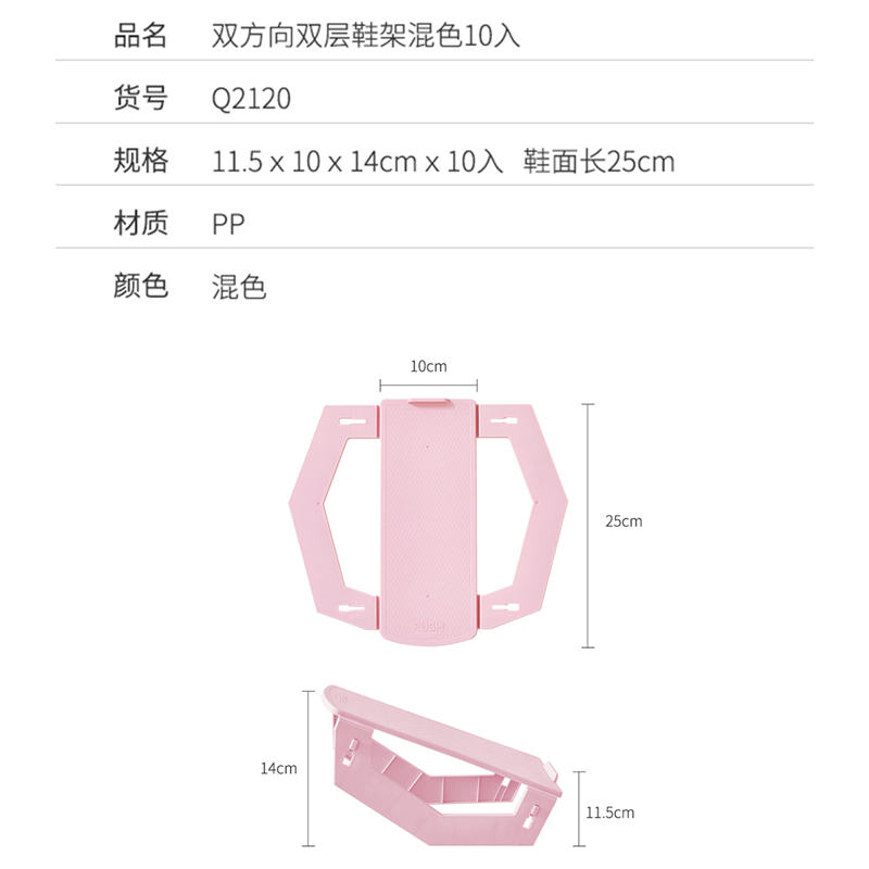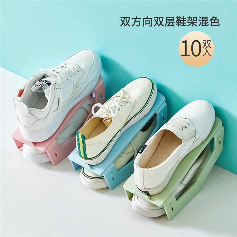 双方向双层鞋架混色10入【PP/混色】 |