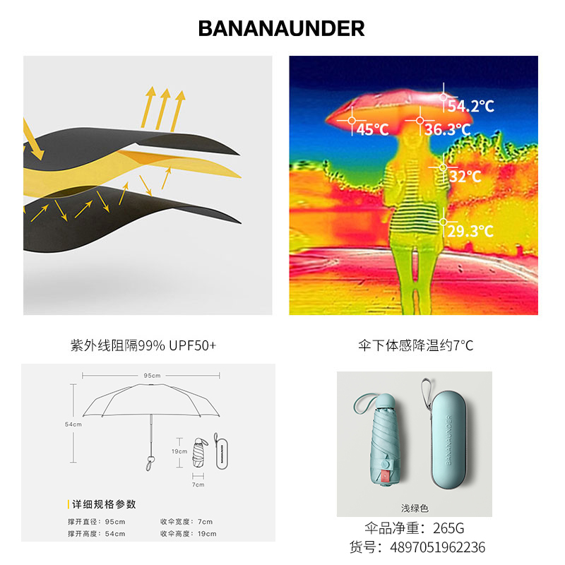 便携折叠遮阳伞【伞布: 聚酯纤维伞杆材质: 铝合金/浅绿色】 |