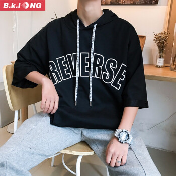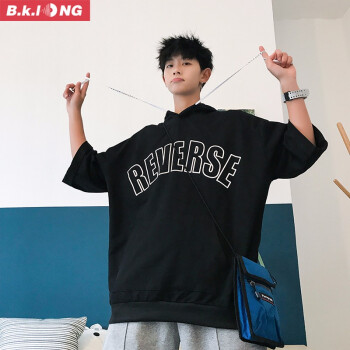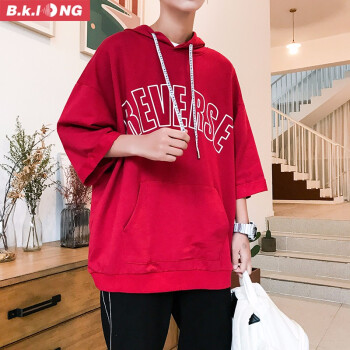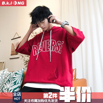 巴克龙新品夏季短袖卫衣男连帽港风潮流时尚休闲宽松百搭韩版青少年短袖t恤潮牌国潮原创设计小清新 红色 XL |